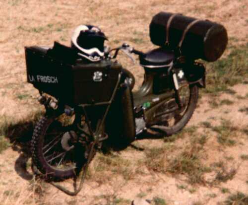 Auf Tour (ca. 1984), hier mit abschließbarem Alu-Kasten. |