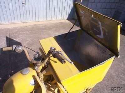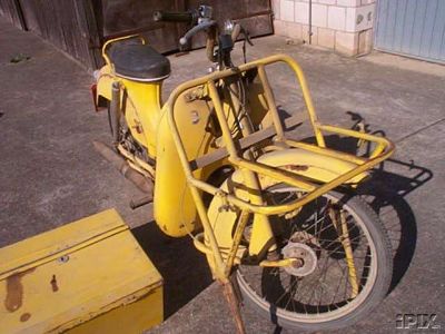 Es ist natürlich postgelb und ab 1971 bei der Deutschen Bundespost gelaufen. Das Moped hat vorn einen großen Gepäckträger mit Patentständer und riesiger Alukiste, die leicht abzunehmen ist (siehe Foto).