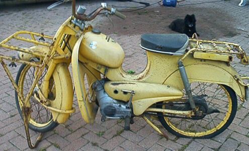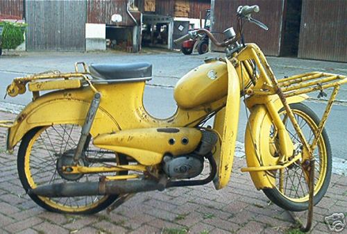 "Ich biete hier ein richtige Rarität, nämlich ein Hercules Postmoped, das ein echter Oldtimer ist, ab 1 zum richten, oder als Teileträger, zur Versteigerung an