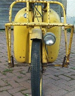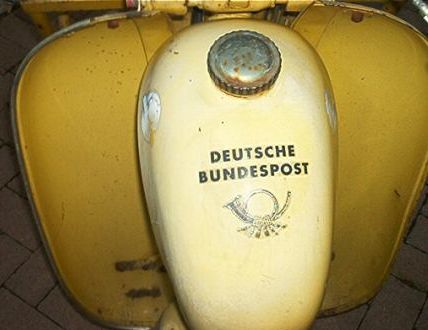 Der Motor ist natürlich von Sachs. Auf dem Tank ist noch der Originalaufkleber Deutsche Bundespost mit Posthorn.