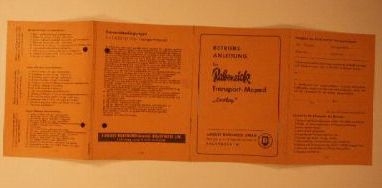 für 6,50 Der Anzeigentext lautete: "1 x Rabeneick Transport Moped "Lastenboy" Betriebserlaubnis