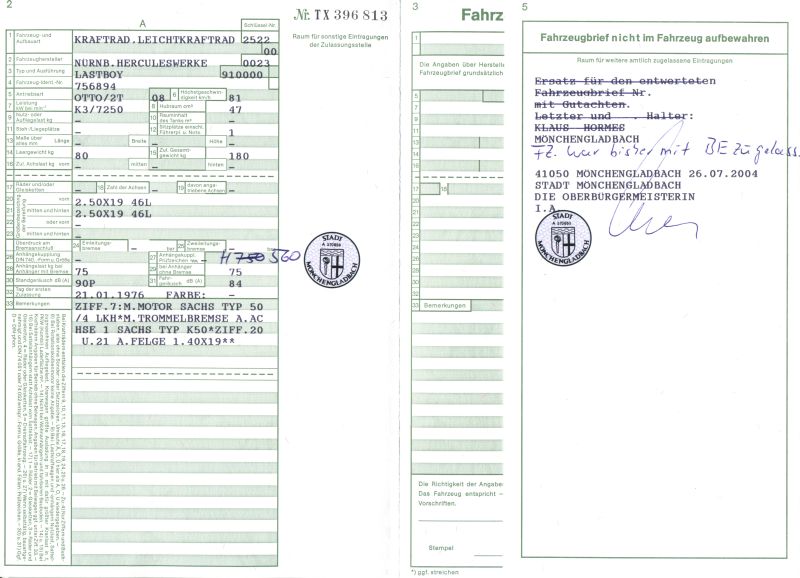 und einigem Hick-Hack bei der Zulassungsstelle ist mein LASTBOY nun als Motorrad