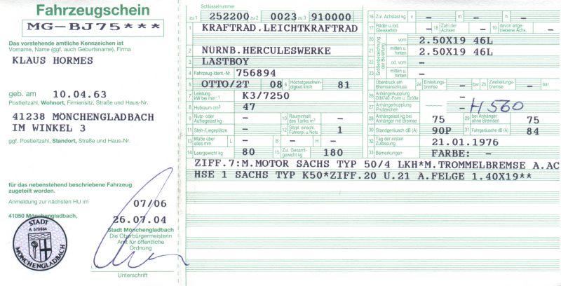 Im Juli 2004 habe ich meinen Lastboy zum Leichtkraftrad,
