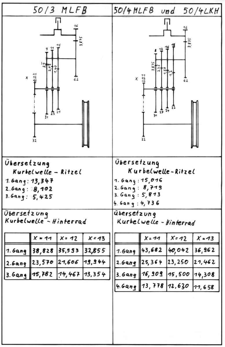 zwischen dem Die - wie ich finde recht anschauliche - Zeichnung habe ich mal zu meiner Lehrzeit angefertigt. Sie ist einfach zu schade, um im dunklen Aktenordner zu vergammeln. Übersetzungsverhältnisse 3-Gang & 4-Gang Download 109 kB jpg-Format Download 112 kB