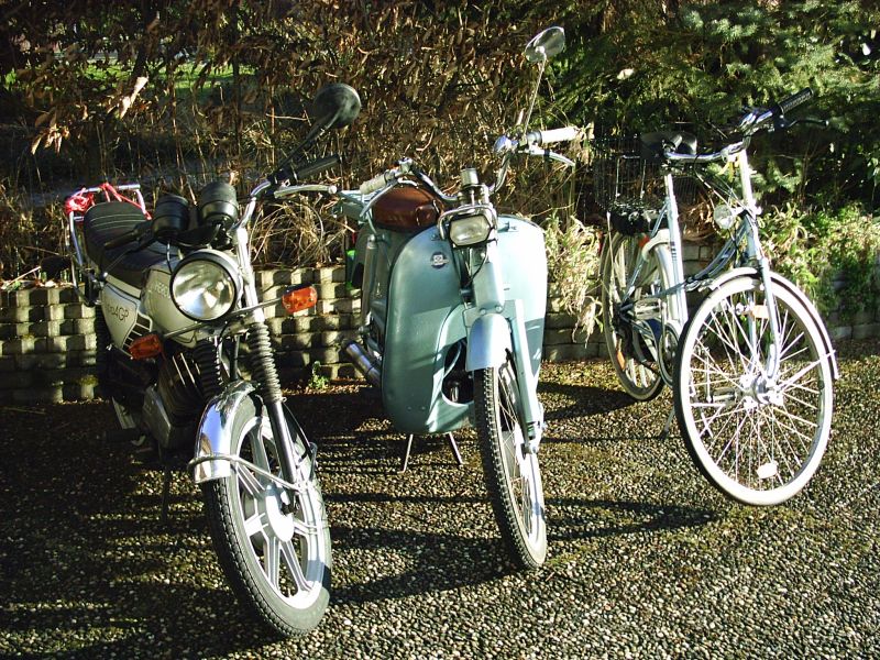 noch postgelb mit dem Front-Gepäckträger - sein neues Heim bei einer