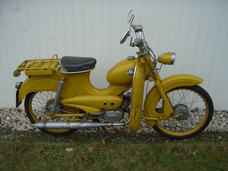 Hallo, endlich bin ich auch stolzer Besitzer eines Hercules Lastboy! Dieses schöne Fahrzeug ist Baujahr 1968 und leistete seine Arbeit bei der Post. Gekauft habe ich ihn von Dieter Merte, der vorher bereits in diesem Fahrzeugregister stand. Er musste ihn leider abgeben, da seine Gesundheit nicht mehr so recht mitspielen wollte. Die blaue Lackierung ist zwar - wie zu sehen - nicht original, aber sehr schön anzugucken. Mir macht es einfach Spaß mit so einem ungewöhnlichen Zweirad zu fahren, weil es immer zuverlässig ist und beim ersten tritt in die Pedale der Motor sofort anspringt. Zurzeit bin ich, wie viele andere Lastboybesitzer, noch auf der Suche nach dem Wertfach. Im Sommer habe ich vor mit diesem Zweirad eine große Tour zu wagen. Es würde mich freuen wenn man einmal einen gemeinsamen Lastboyausflug planen könnte. Im Moment bin ich auf der Suche, ob jemand mit mir eine